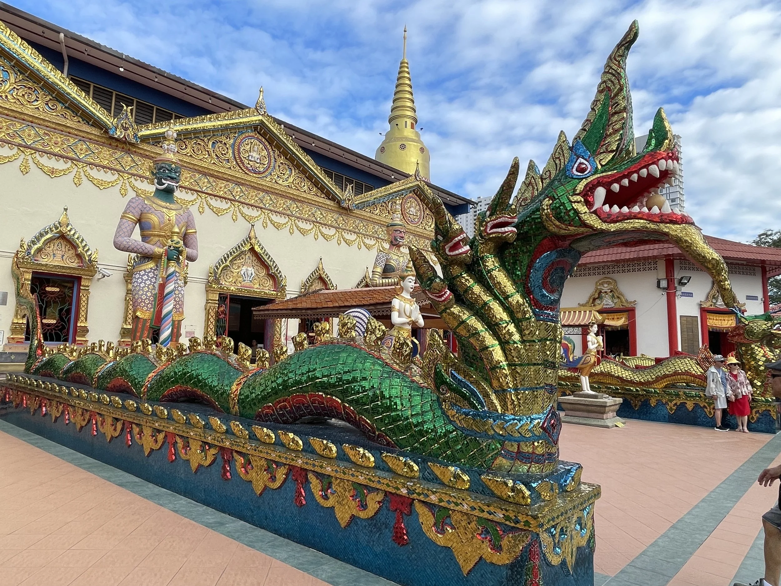 The temple grounds were vibrant and colorful, with four large dragon statues flanking the entrance and smaller figures of guards and mythical beings scattered throughout. It was both a visual feast and a peaceful start to the day.