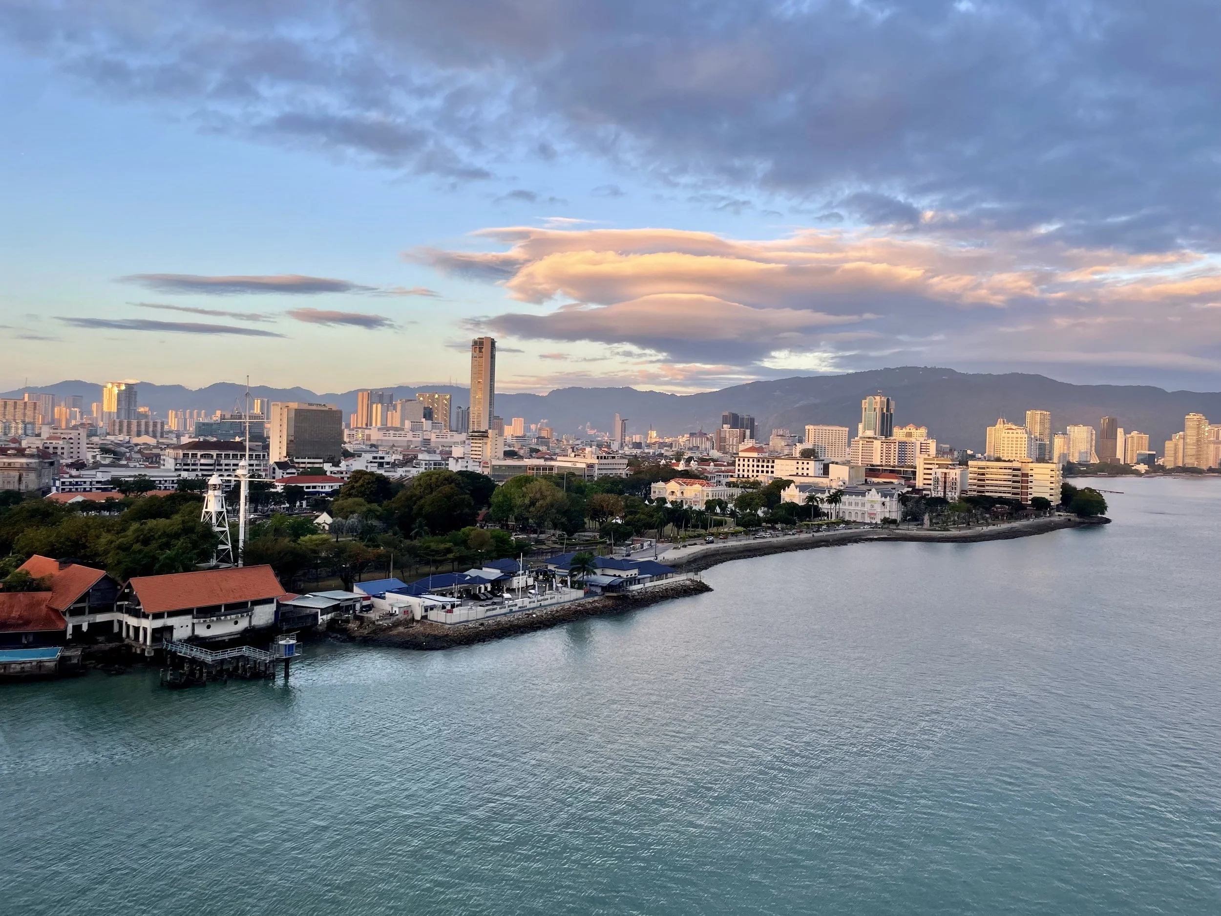 We arrived at Penang Island just as the sun began to rise, casting golden light over the shoreline. From the upper deck of the cruise ship, the island looked like a tranquil paradise, with Georgetown’s skyline faintly outlined in the morning haze. It was a beautiful and peaceful welcome to Malaysia.
