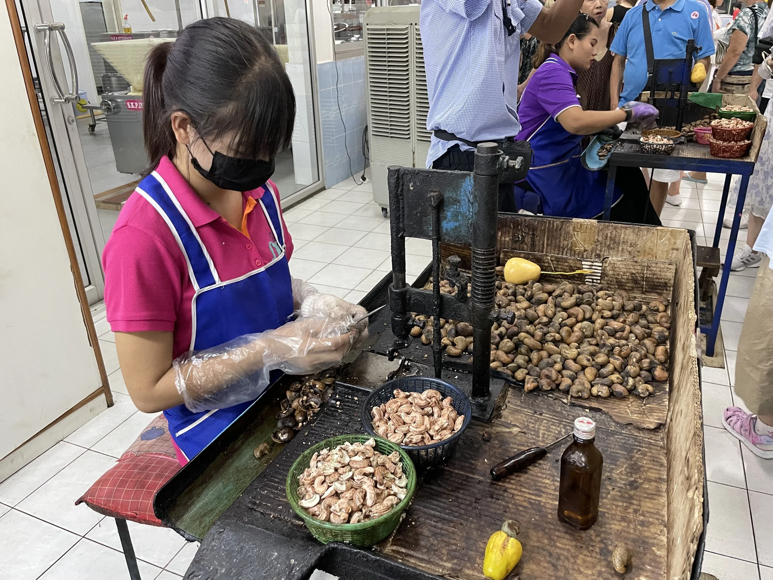 Our next stop offered a tasty change of pace. At Sribhurapa Orchid Co., Ltd., we toured a small factory where we got to see cashew nuts processed entirely by hand—a surprisingly intricate and labor-intensive process.