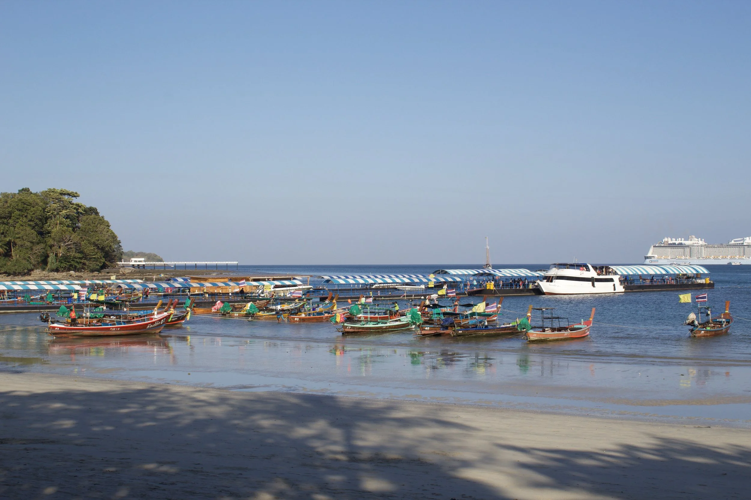 That morning, our ship anchored just offshore from Thailand’s largest island. Unlike many ports, Phuket doesn’t have a large cruise terminal, so we boarded a tender boat for the ride to shore. The water was calm, the sun already bright overhead, and the shoreline dotted with colorful traditional Thai fishing boats, their crews busy preparing nets for the day ahead.