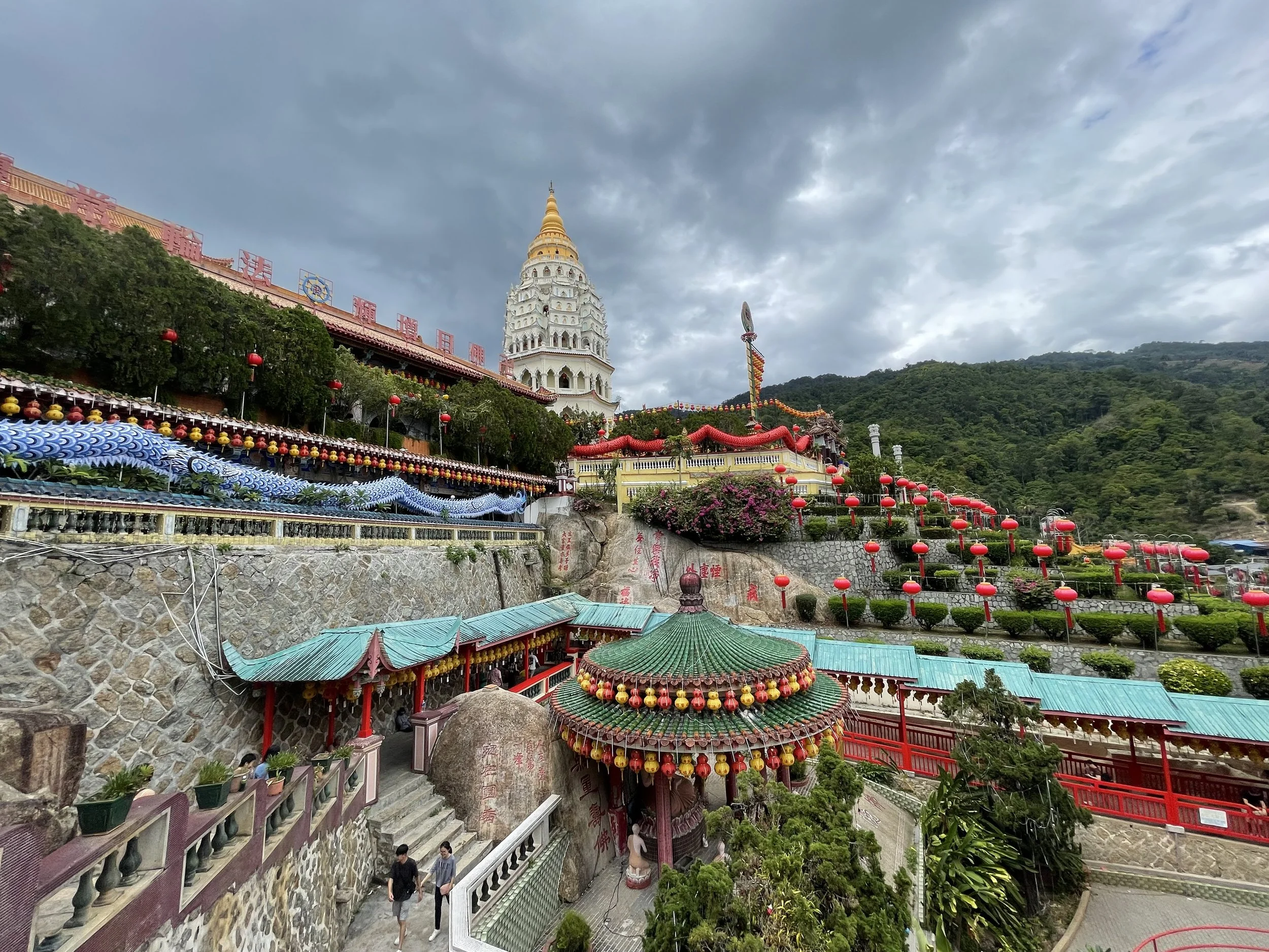 With full stomachs, we continued to our next destination: Kek Lok Si Temple. Known as one of the largest Buddhist temples in Southeast Asia, Kek Lok Si is a sprawling complex perched on a hill in Air Itam. The temple features tiered roofs, vibrant murals, and an enormous statue of the Goddess of Mercy, Kuan Yin. As expected, there were stairs—lots of them. But the views from the upper levels made the climb worth it, offering a panoramic look over the city below.