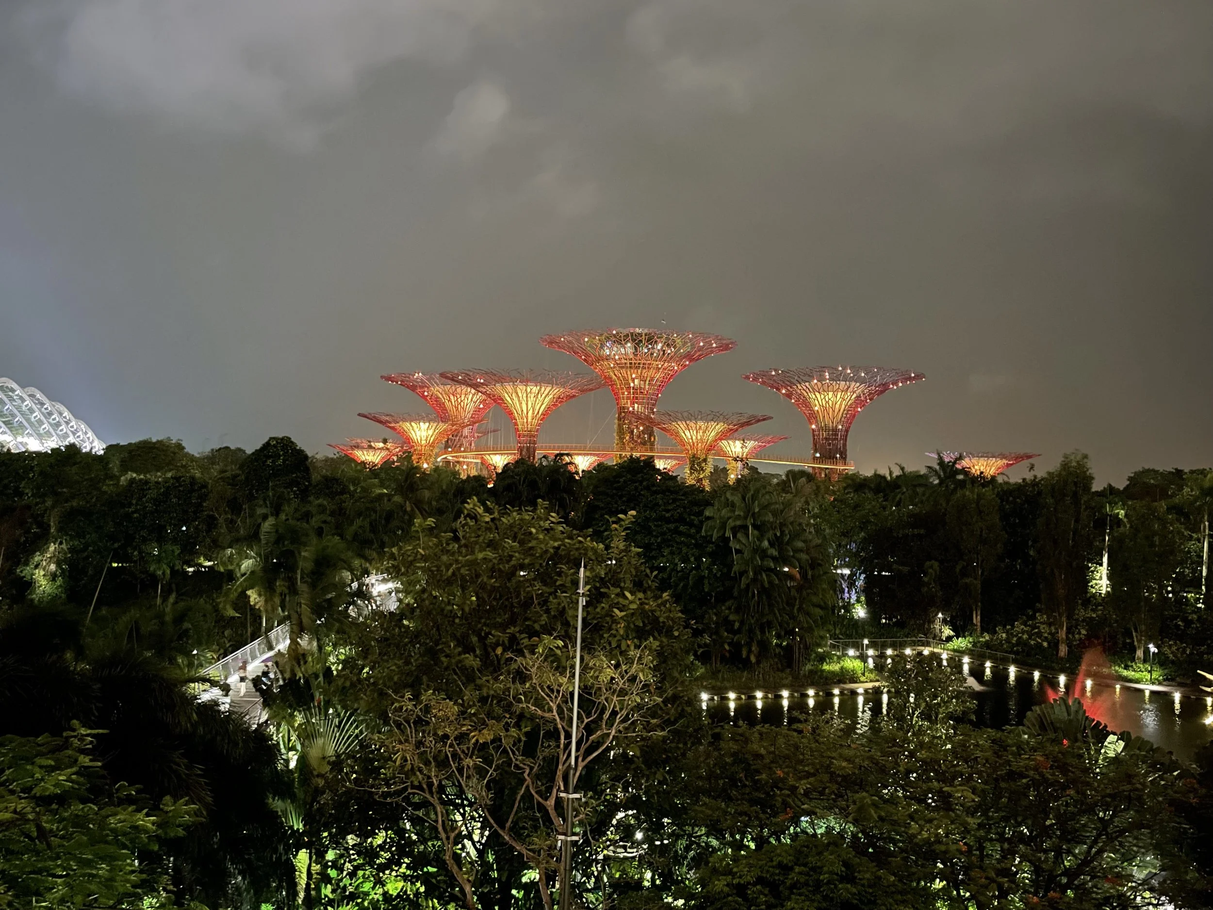 Hours later, I woke up to darkness outside. Ready to explore again, I ventured out to the Gardens by the Bay. The illuminated Supertrees were mesmerizing, and I wandered through the park, soaking in the beauty of the night.