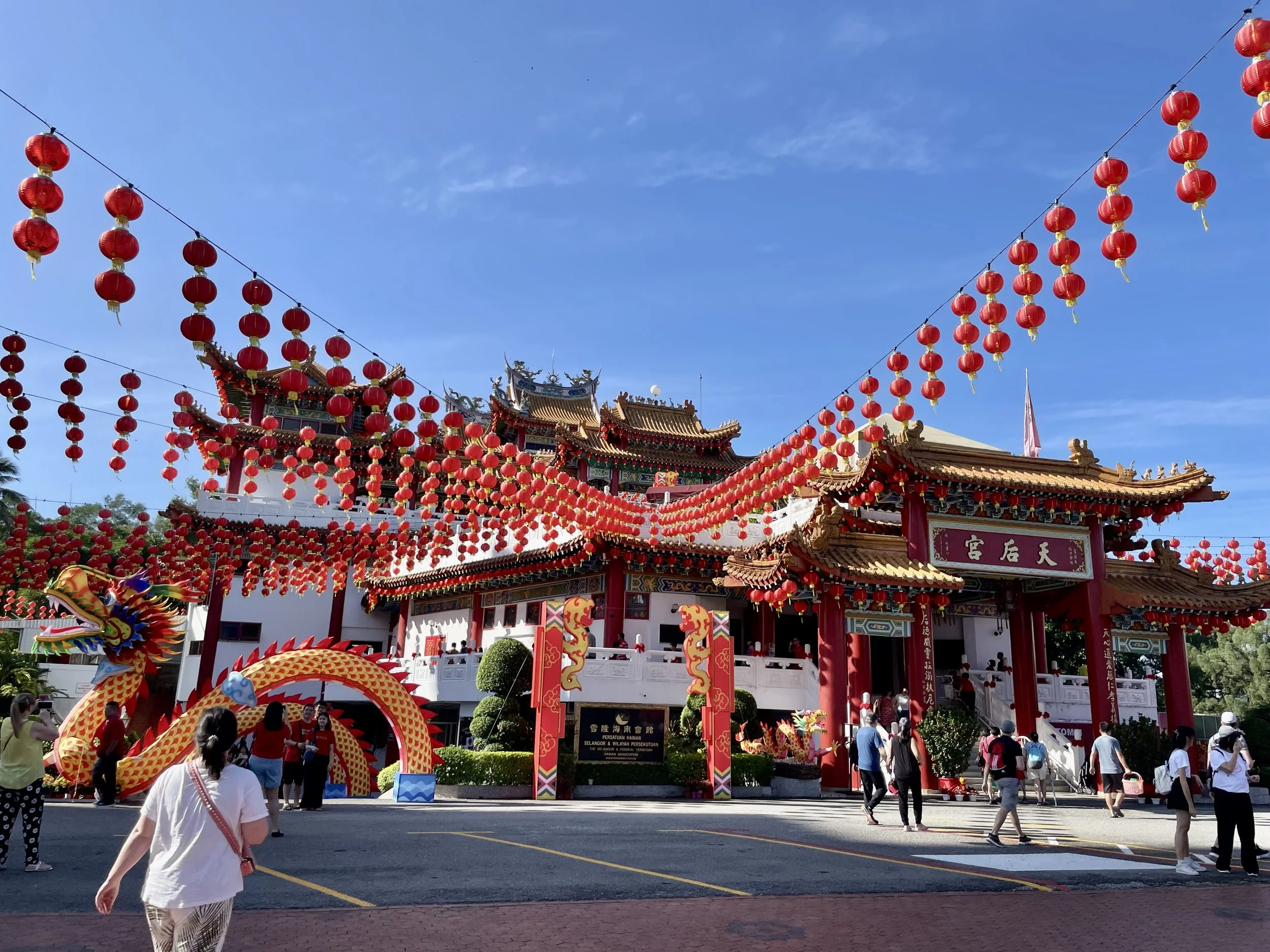 Our day began at Thean Hou Temple, a six-tiered Chinese temple perched atop Robson Hill. Completed in 1987, this architectural gem is dedicated to Mazu, the Chinese Goddess of the Sea, and is one of the oldest and most ornate temples in Southeast Asia. With its red pillars, intricate carvings, and rows of glowing lanterns, the temple blends modern design with traditional Chinese elements.