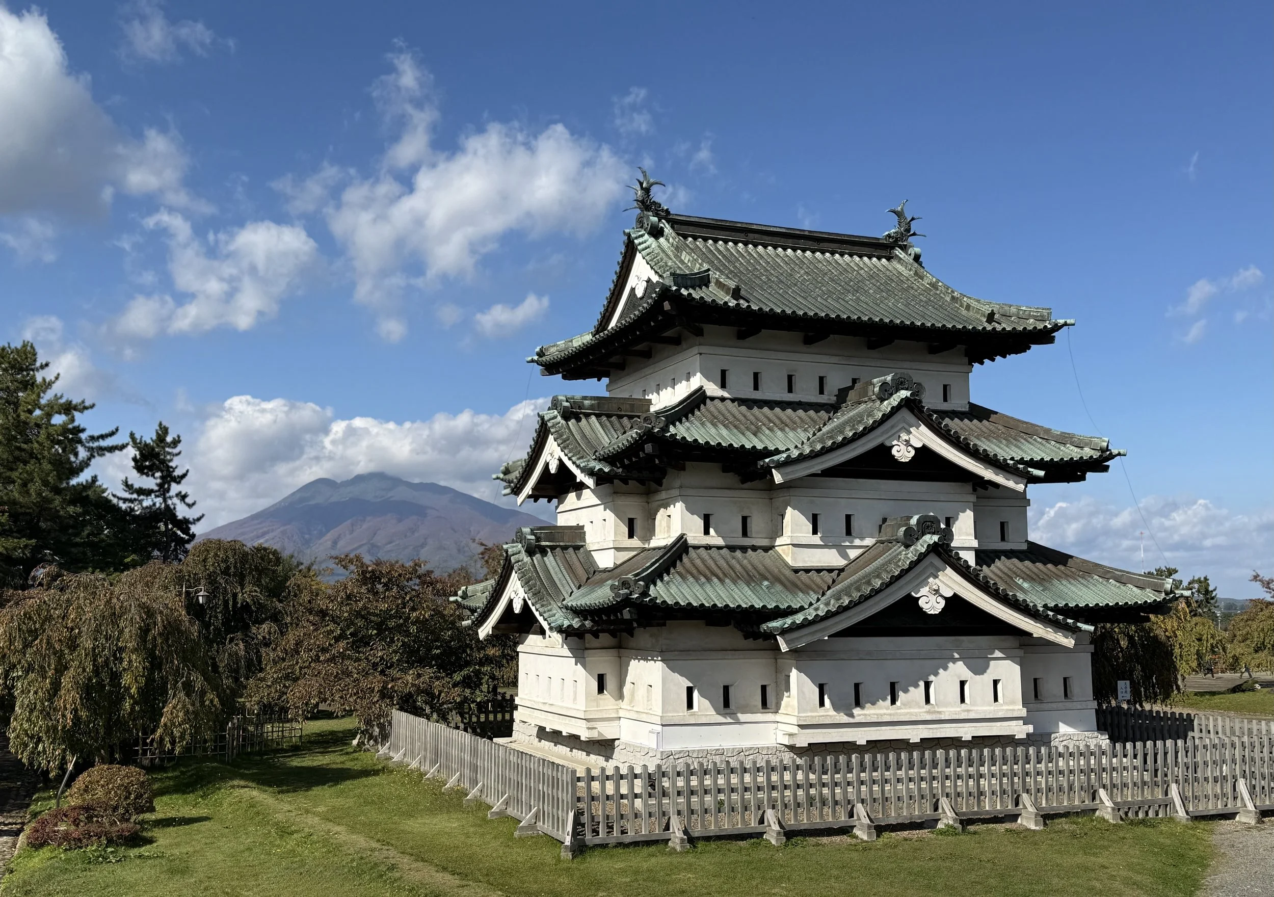 Hirosaki Castle was built in the early 1600s by the Tsugaru clan and is one of only twelve original castles still standing in Japan. The three-story keep sits in the center of Hirosaki Park, a public area that spans nearly 50 hectares. The castle is surrounded by moats and earthen walls that once served as its main defenses. Today, the setting feels calm and open, with tree-lined paths, arched bridges, and still ponds that reflect the tower above.