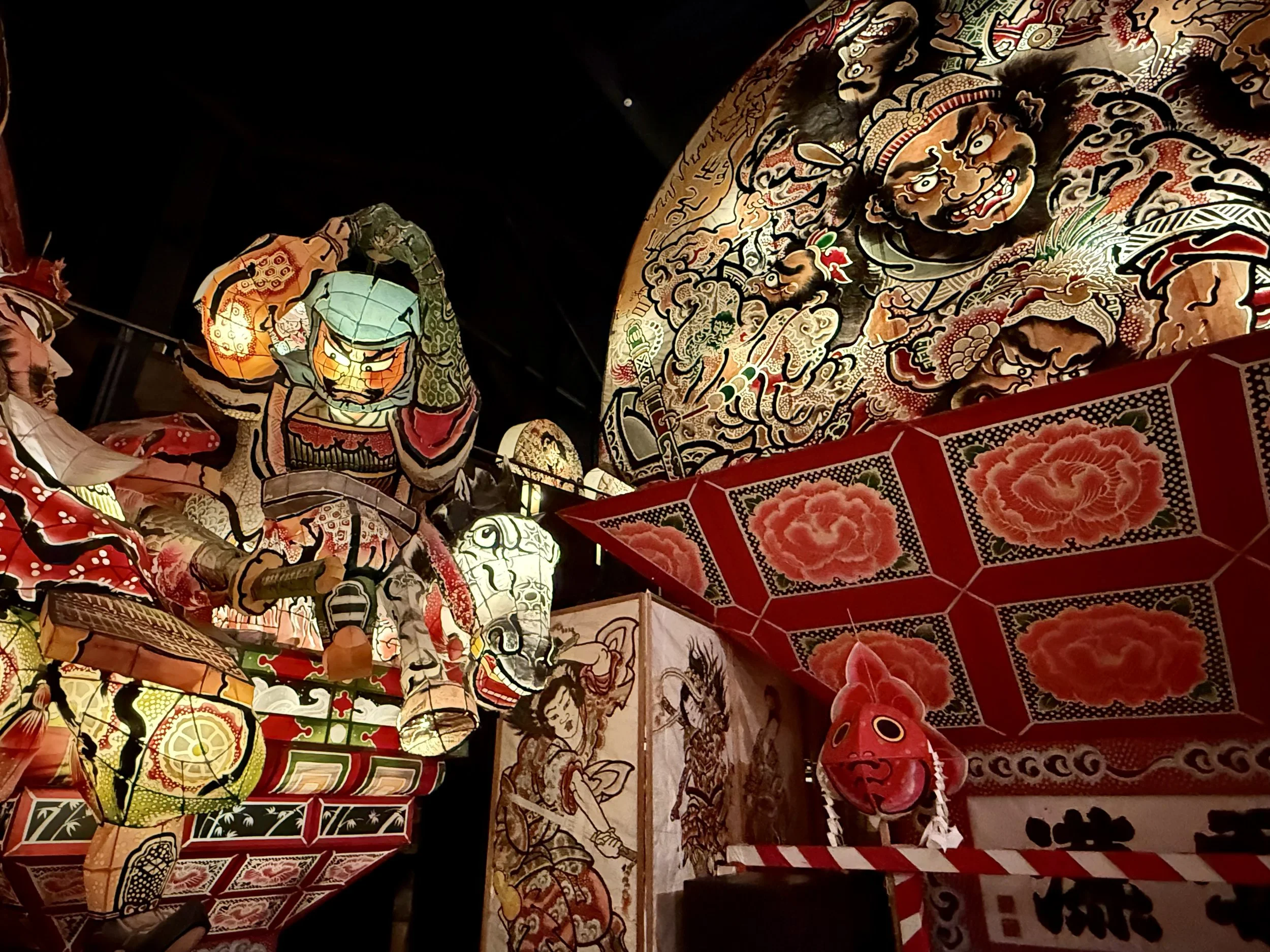 Inside, the museum displays four to five giant illuminated floats that can reach up to 9 meters wide and 5 meters tall. Visitors can walk right up to them, learn about how they’re constructed from washi paper and wire, and watch short video presentations of the festival.