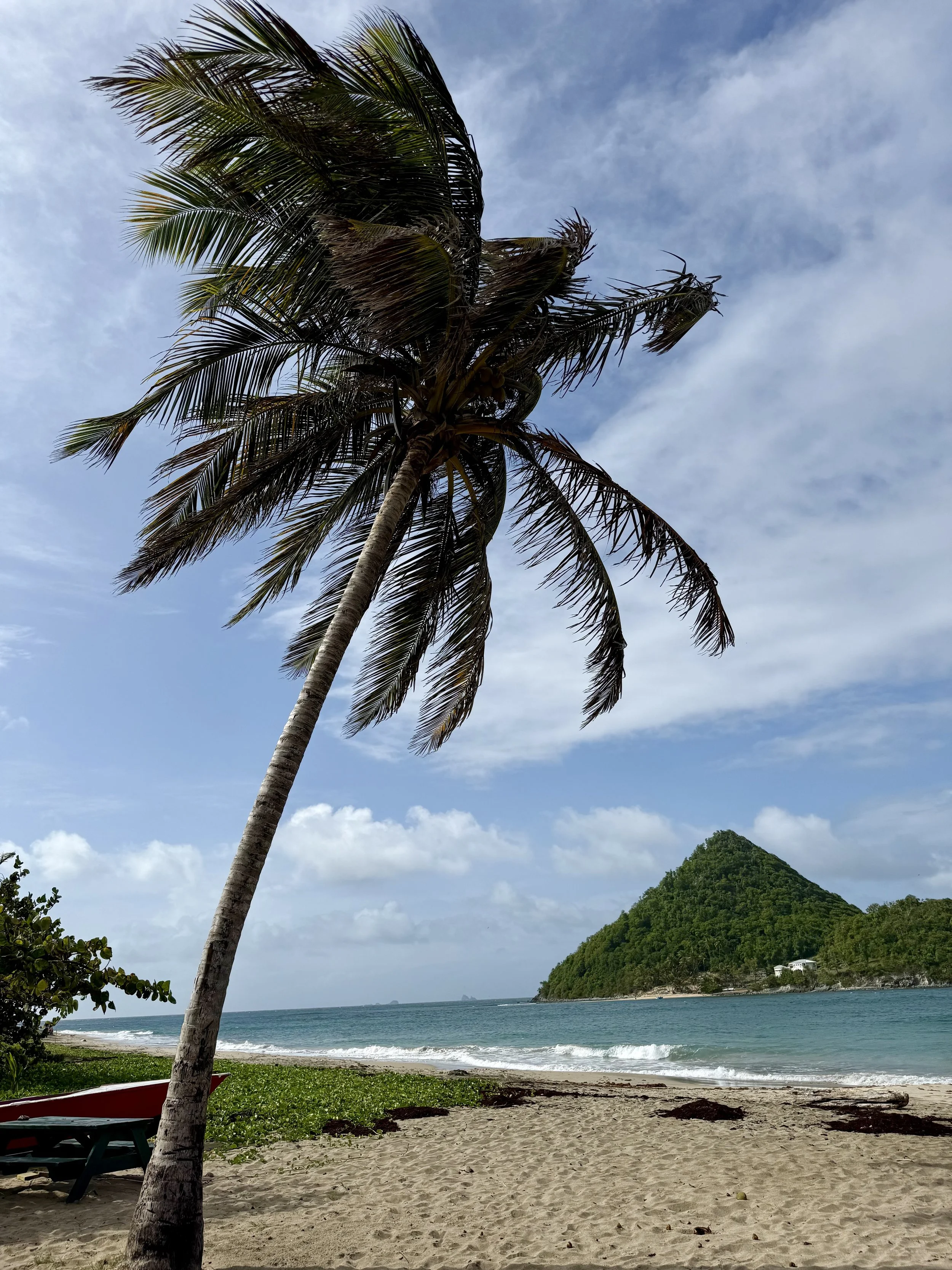 Later, I made a quick pass through Grand Anse Beach—a postcard-famous stretch of soft sand and turquoise water—but I didn’t linger. It was mid-afternoon and hot. I ended the day at La Plywood, a casual beachfront bar built from scrap wood, where I sat inside and watched the sun go down through the open walls. We listened to live music and ate fries and fish tacos. After sunset, the lights came on—and the bugs seemed to materialize from nowhere. The place was suddenly buzzing with small flying insects I couldn’t identify. To escape them, I took a walk along the beach and watched the stars come out as the waves slapped the coastline.