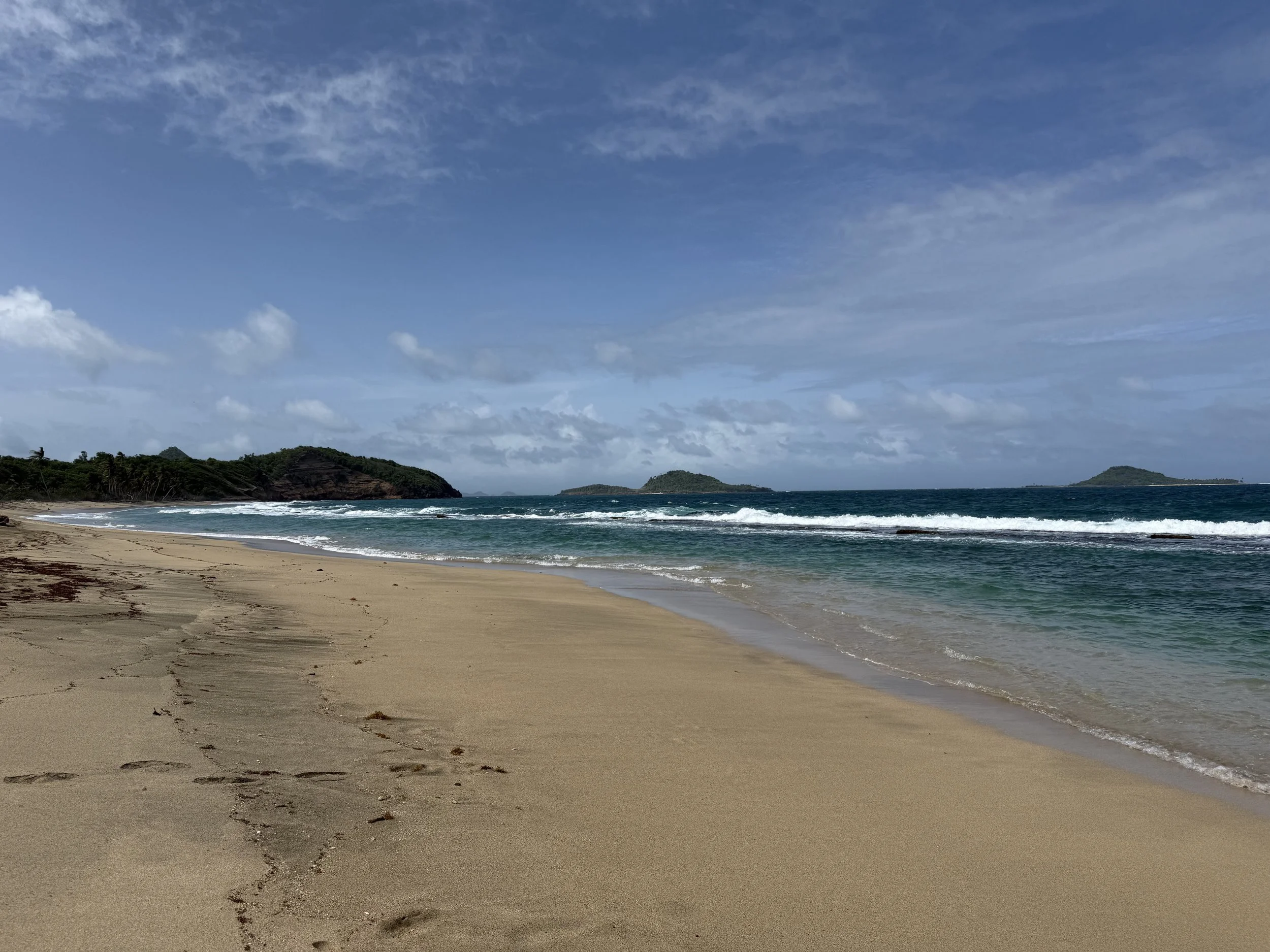 I started the morning with a walk to West Indies Beer Company, a laid-back brewpub that doubles as a community hangout. On Sunday mornings, it draws a steady mix of locals and expats—some there for brunch, others catching up over a drink. Formula 1 was playing on the TVs, and the bar was already half full by the time I arrived. I ordered an egg and cheese sandwich, which took its time coming out. No rush, though—the pace matched the atmosphere. Some folks were chatting at the bar, others sat in pairs or small groups at the outdoor tables. After eating, I strolled down to Lance aux Épines Beach, which was quiet and practically empty.