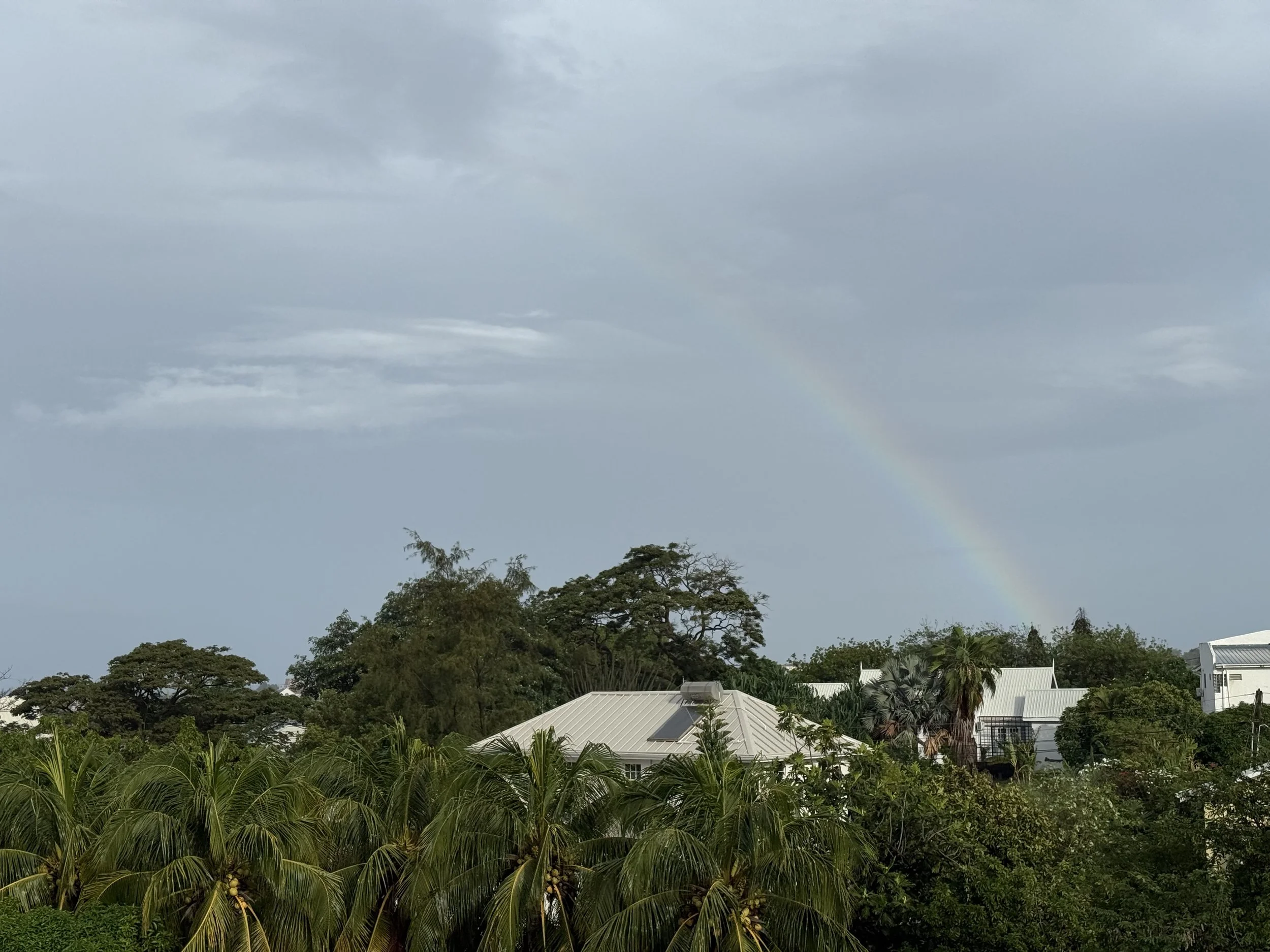 I woke to the sound of wind and rain tapping against the windows—a steady downpour that lasted about an hour. When it finally let up, I opened the window and spotted a rainbow stretching over the trees. The rest of the morning was slow and quiet. I stayed in, packed up, and relaxed until it was time to check out. Then I called a cab to the airport—and just like that, my time in Grenada came to an end.