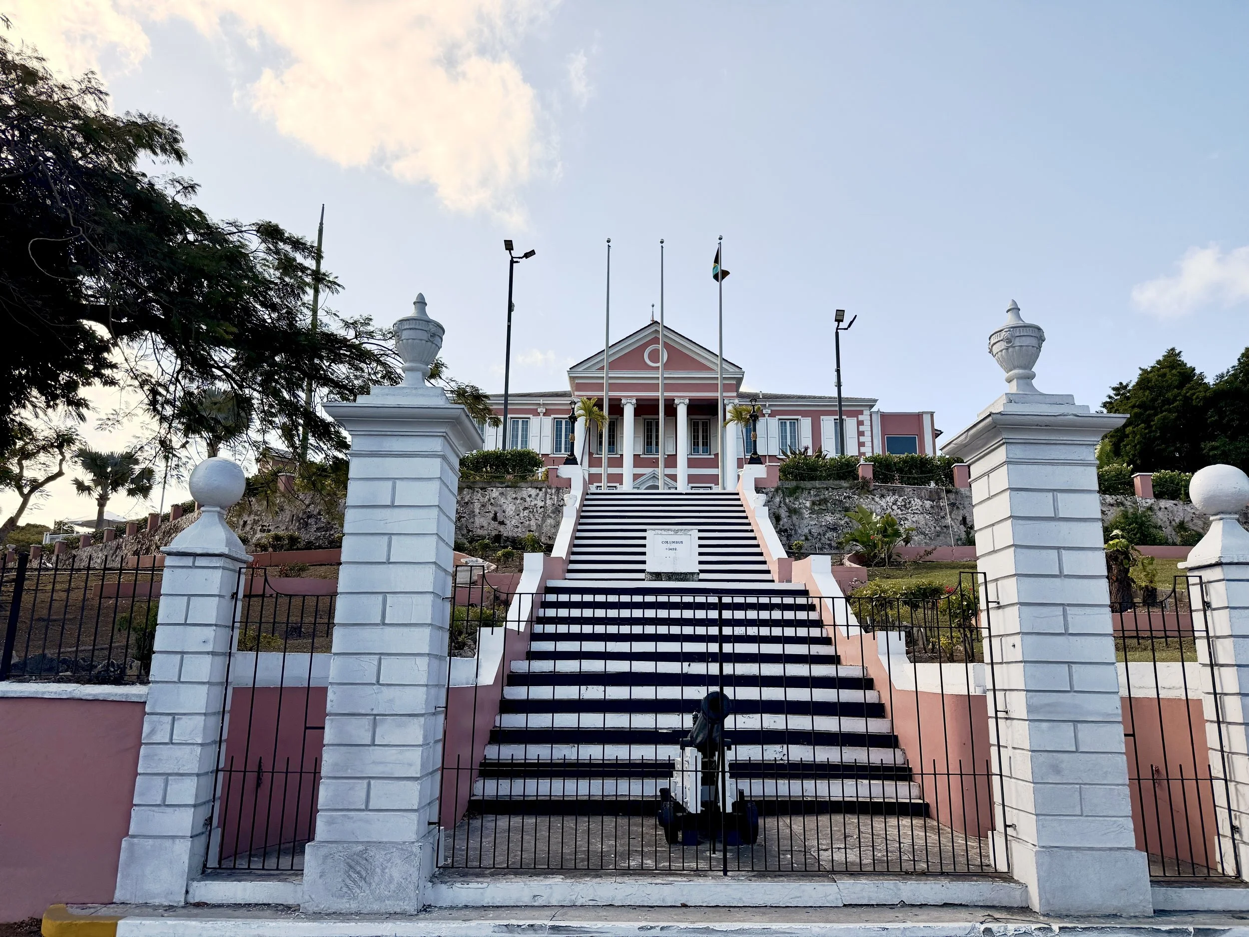 Start near Parliament Square, where the pink colonial government buildings sit across from the harbor. Just a few blocks away is Christ Church Cathedral, one of the oldest churches in The Bahamas. Continue uphill and you reach the Queen’s Staircase, carved out of limestone in the late 1700s by enslaved people. At the top sits Fort Fincastle and the Water Tower, both offering views over the city and port.