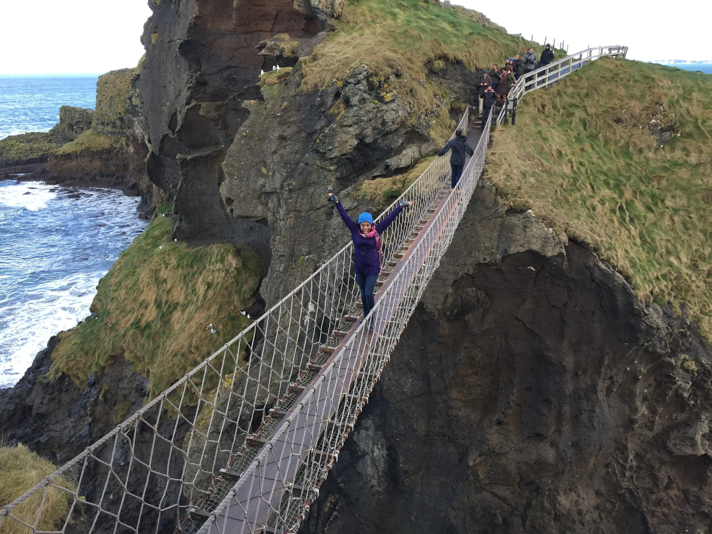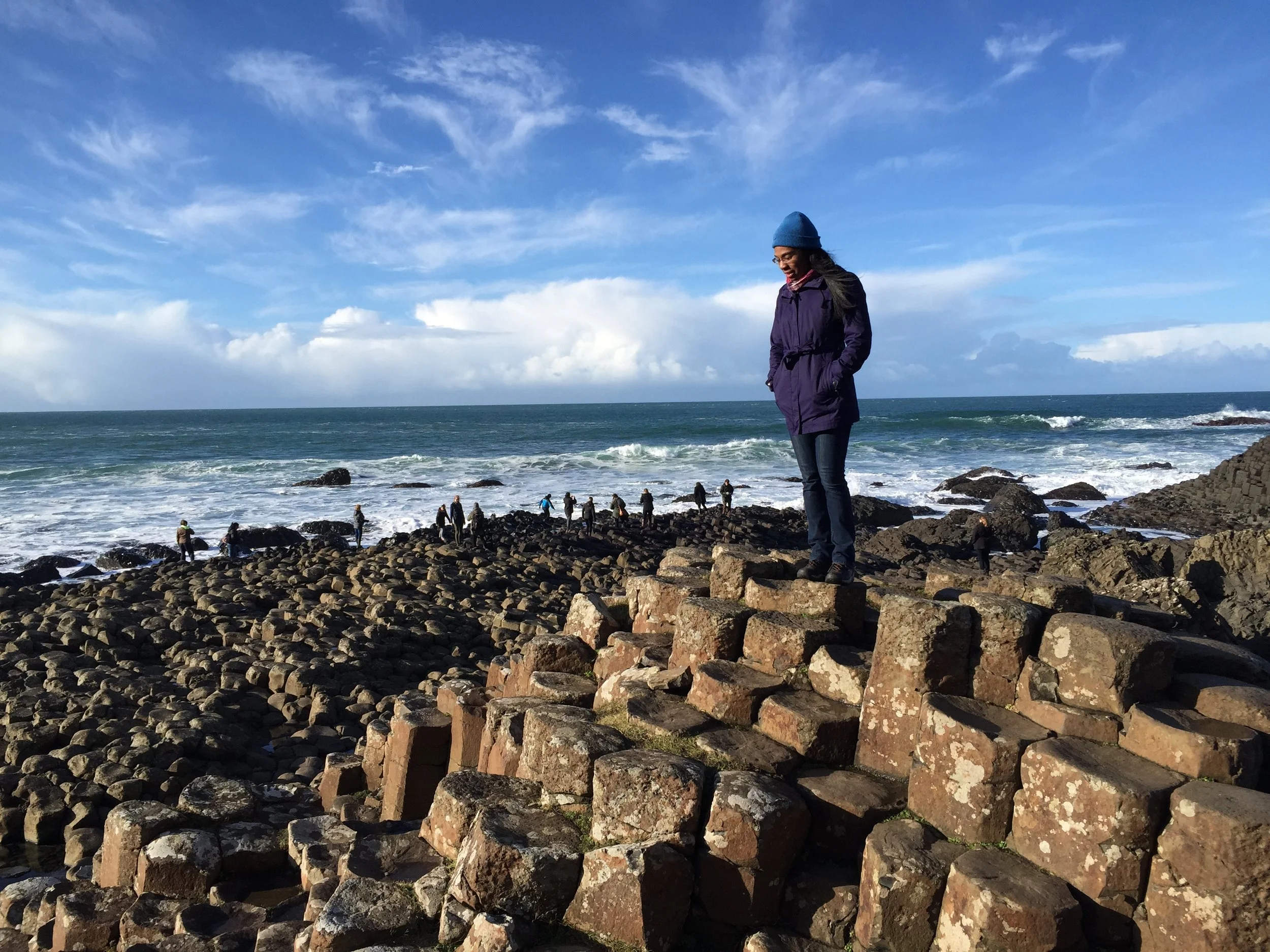 We crossed the Carrick-a-Rede Rope Bridge near Ballintoy, a narrow bridge strung high above the rocks, and stopped briefly at the ruins of an old church along Ballytober Road before continuing to the Giant’s Causeway, a UNESCO World Heritage Site made up of hexagonal basalt columns shaped by volcanic activity millions of years ago. The waves pounded the shore as we climbed over the stones, the whole place feeling both otherworldly and ancient. Before heading back to Dublin, we stopped in Belfast, where City Hall glowed beautifully at night.