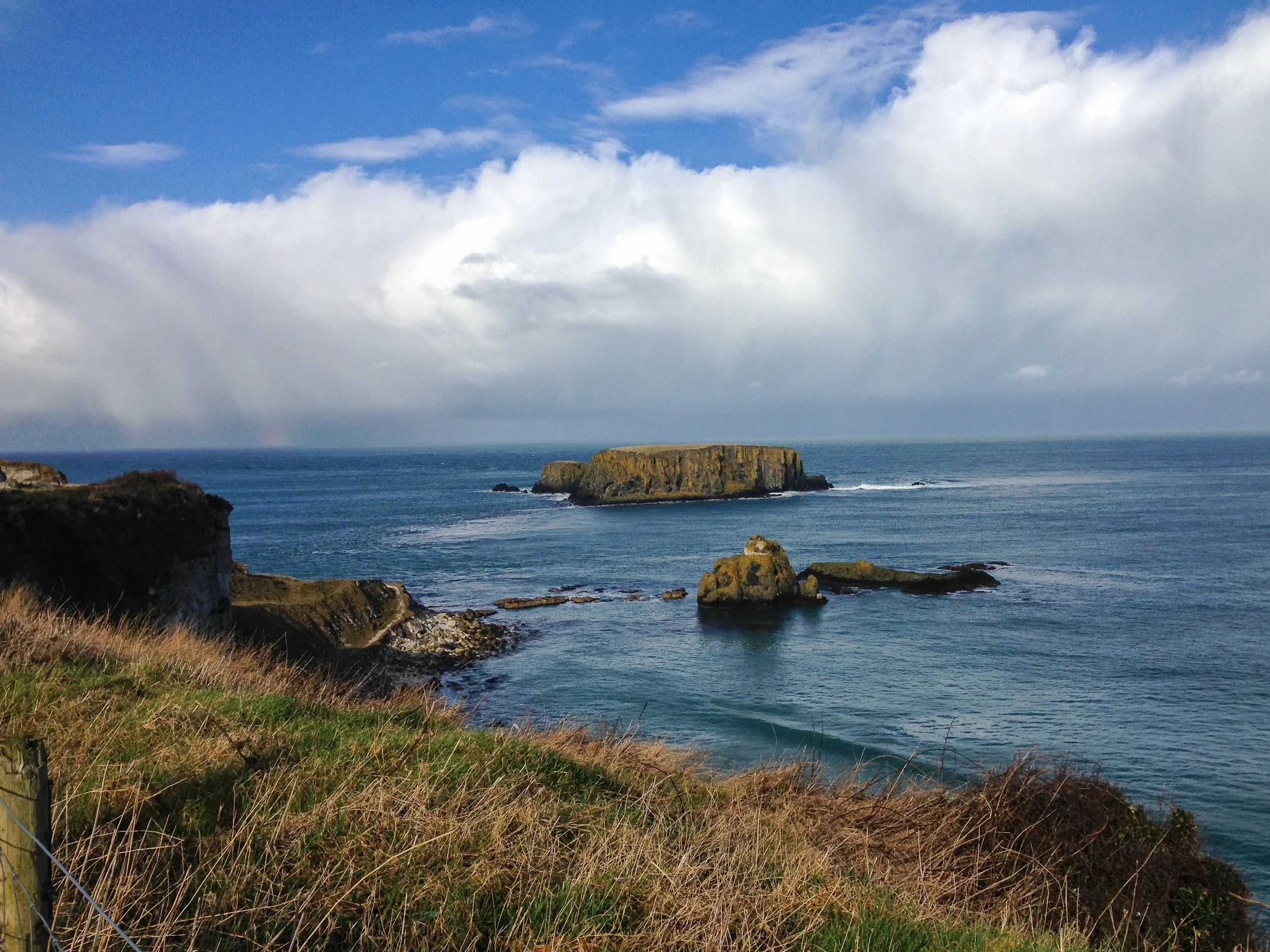 The next morning, we joined a day tour to Northern Ireland, leaving before sunrise for the long drive north. I booked the tour through Viator, which made planning simple and dependable. The first stop was Carnlough Harbour, a quiet seaside village with small boats bobbing in the water. From there, the bus followed the Causeway Coastal Route, winding through hills, cliffs, and farmland.