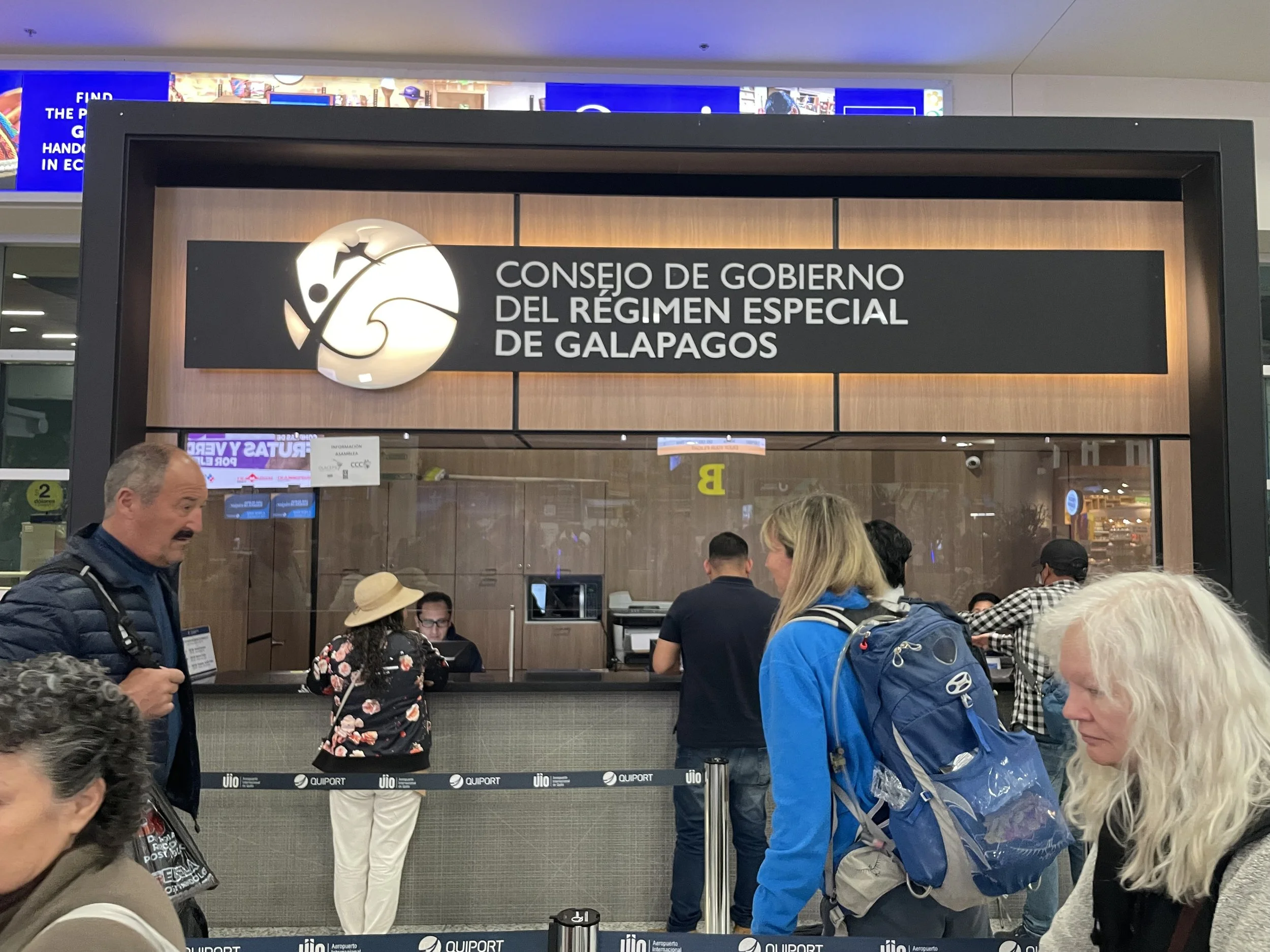Obtain a Transit Control Card (TCT) at Quito or Guayaquil airport ($20 per person). This can be obtained at the Consejo De Gobierno Del Regimen Especial De Galapagos (Governing Council of the Special Regime of Galapagos) counter. There is usually a line, so come with your passport, patience, and a payment method.